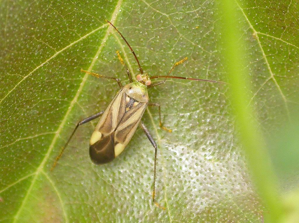Взрослый клоп серовато-зеленый или серовато-желтый (длина тела 7.6–9.5 мм). Голова поперечная, усики едва короче тела. Переднеспинка одноцветная или с 2–4 темными пятнами; щиток вдоль середины с двумя сближенными коричневыми штрихами.