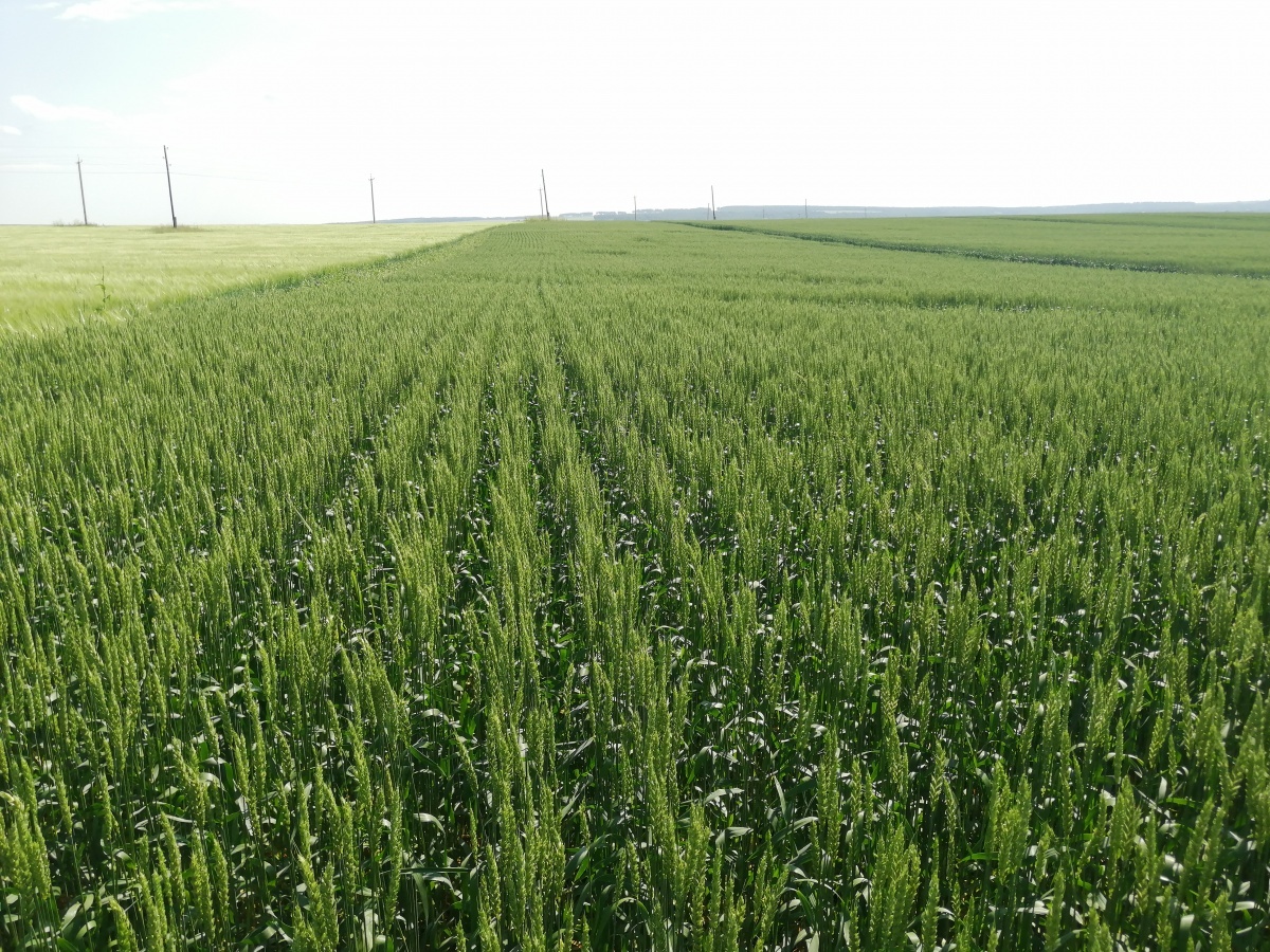 Через месяц после посева растения пшеницы раскустились, сформировано 2−5 дополнительных побегов. Фаза выход в трубку. Высота пшеницы 45−50 см. Сформирована хорошая вторичная корневая система. Листовой аппарат без признаков поражения инфекцией.
